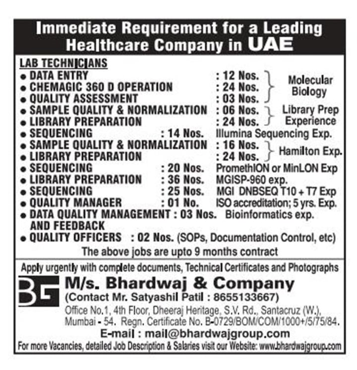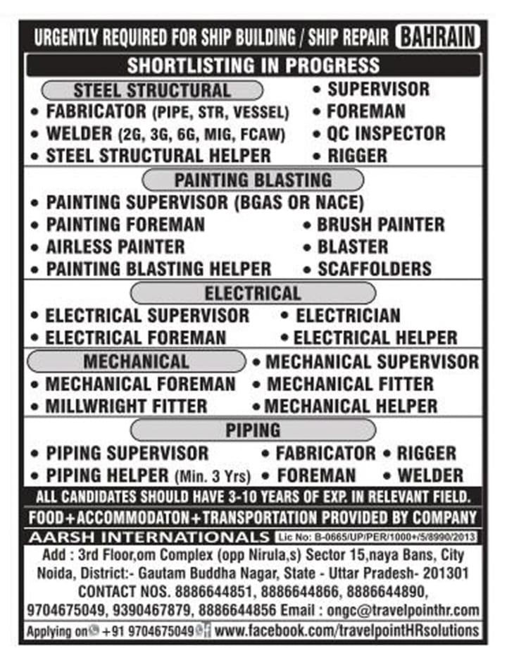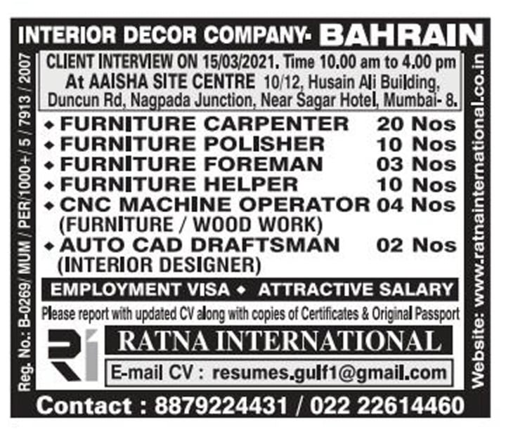 Ventura International is Mumbai based manpower consultant which is hiring for their client in Bahrain.