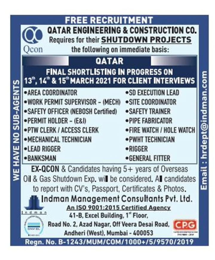 One of the leading recruiting agencies in INDIA. Successfully fulfilling manpower requirements for several prestigious organizations and reputed companies in Saudi Arabia, Qatar, UAE and other middle east countries. A team of highly qualified professionals screen several candidates before making a selection.