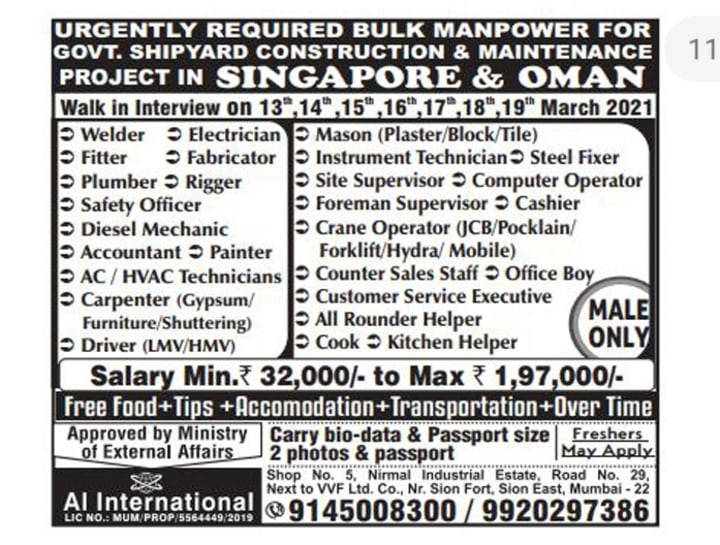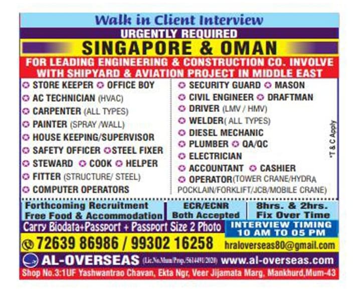 AL OVERSEAS is Mumbai based manpower consultant and registered under ministry of external affairs.