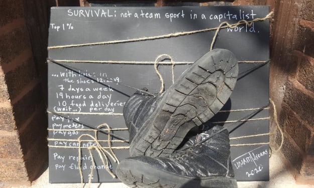 She arrived at her destination. A building with ghosts that pained her and bled her mind. The corner, familiar, where it began so long ago, now the sight of a pizza restaurant. She picked up another order for delivery. She focused on her mission, not sure exactly what that was, she was certain she had to face the demons. She drove down Lake Shore Drive, trying not to be distracted. A gigger, a pizza delivery driver, ride-share runner single mother of two with three jobs and one mission, to lead by example and provide a better life.