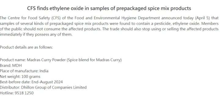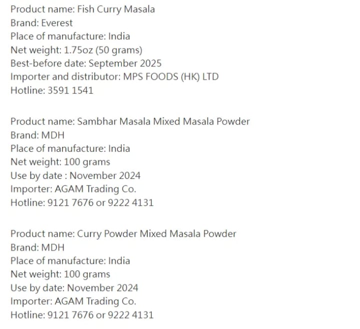 https://www.cfs.gov.hk/english/press/20240405_10919.html https://www.businesstoday.in/india/story/spice-row-mdh-everest-spices-now-under-australia-food-safety-agencys-scanner-427576-2024-04-30