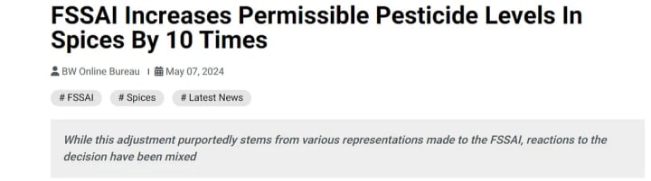 Far from issuing warnings last month, the Modi government(India), increased the permissible pesticide levels by 10 times. The level of pesticide that is allowed to be present in food, was increased 10 times. They are playing with the lives of ~8 billion people. This isn’t about a few spice mixes. This is much more dangerous than it seems.