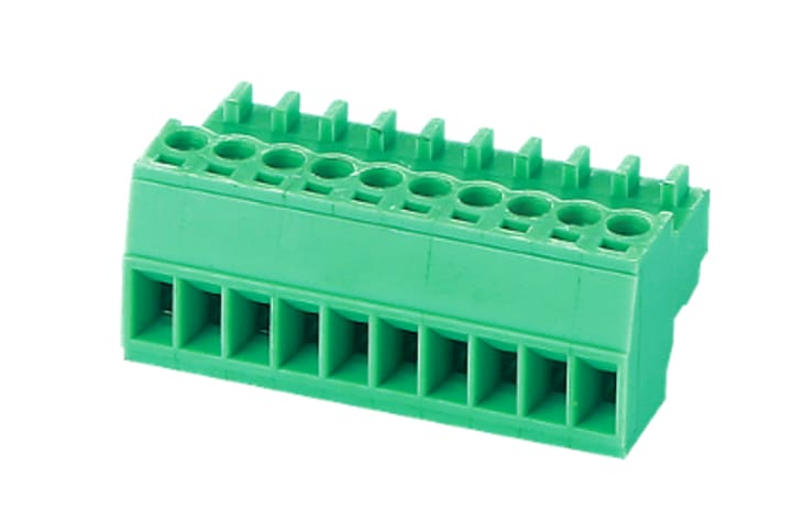 Terminal blocks are a type of connector component used for connecting sections of electronic circuits in industrial settings. These components feature wire-securing receptacles encased in a single plastic housing, providing both secure connections and protection. Some terminal blocks come with contact pads or legs for PCB connection, while others are equipped with their own housings for attaching to machine frames, industrial electrical components, rail and rack systems, or control-panel enclosures.