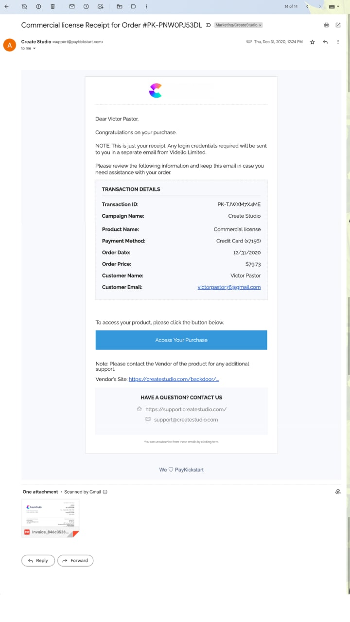 Once you purchase the software, CreateStudio offers you a 30-day guarantee. So if within 30 days span you change your mind and ask for a refund, they will send you a 100% refund within 30 days of your purchase.