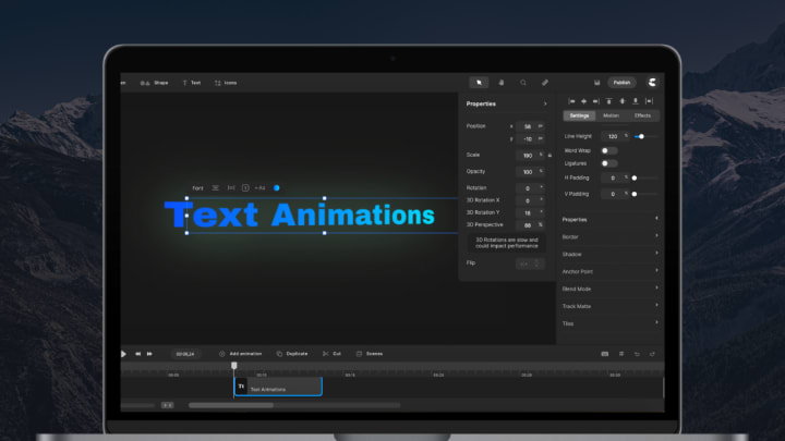 CreateStudio gives you the power to animate anything - media, text, size, position, opacity, color, borders, and much more - at any time.