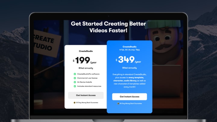 CreateStudio offers two different plans (Standard & All Access Pass) to fit your budget and needs.