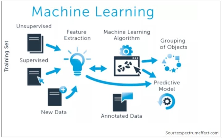 Machine learning is a major subject of data science. There are two kinds of machine learning, they are supervised learning and unsupervised learning. The major functions of machine learning are classification (example: decide whether to grant a loan to a customer), regression (example: sales forecast), and clustering (example: group your customers). One of the main applications is predictive analysis.
