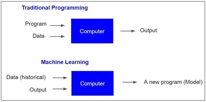Traditional programming vs machine learning
