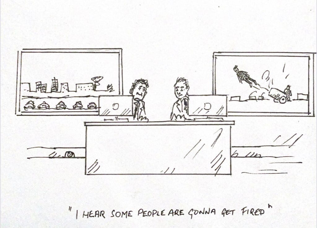 'FIRED' - Made Redundant - Pink slip - Canned - Terminated - Walking papers - Vacate notice and I'm certain there are many less subtle missives blatantly administered. Currently, you might hear: You're not gone yet? Those who are unceremoniously sacked are often helped to box up and then, as I've drawn, shot out the door from a 'Cannon.'