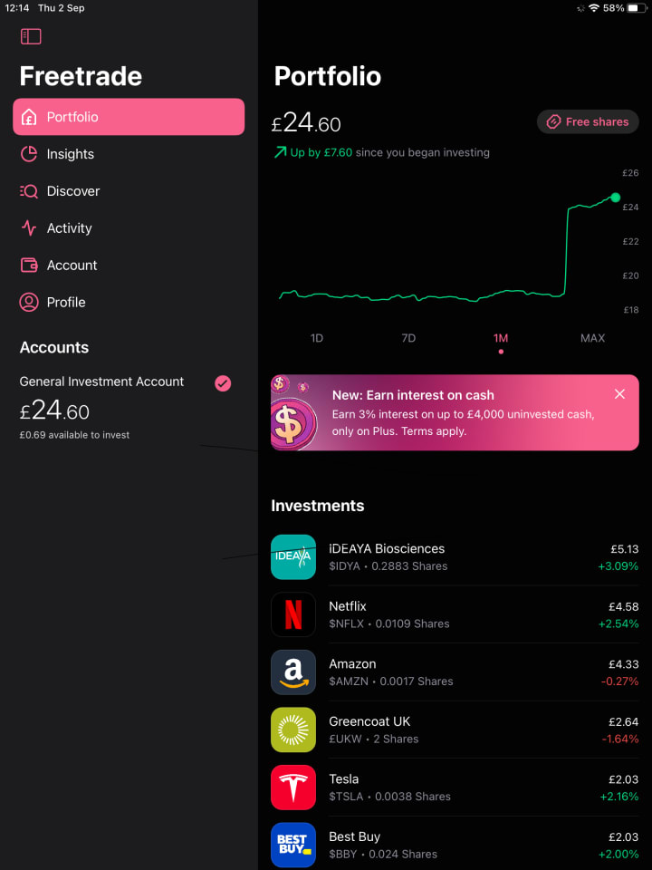I have been using the app since June and as of writing, my portfolio is worth £24.60. As you can see in the image, my portfolio has been rising, and it does go up and down on occasion. It‘s easy to study the trends, but it’s never easy knowing what the stock market will be on the following day.