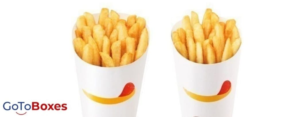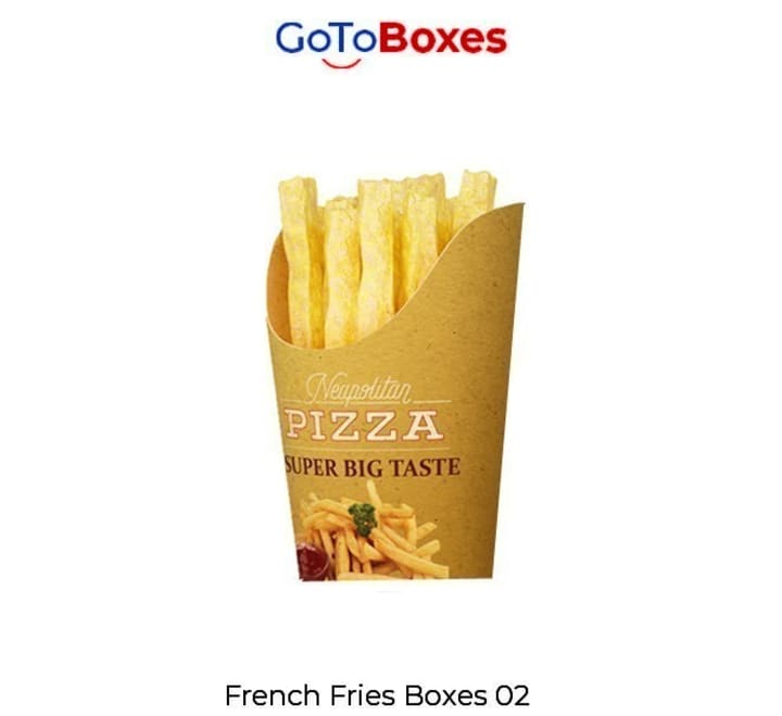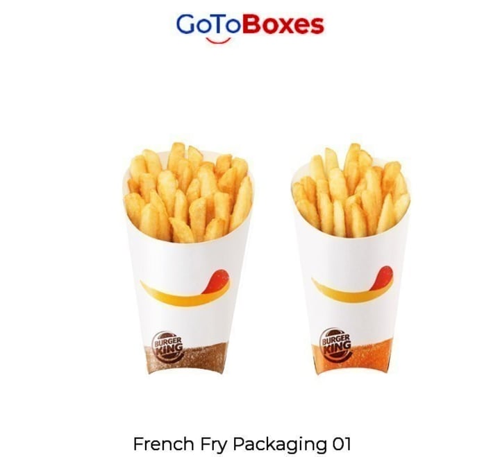 Nowadays people select food by looking at the manners, etiquettes, and the styles in which the food is being represented. So the presentation of food makes it more delicious and attractive to the buyers. That is why the presentation cannot be ignored it required equal attention and time as food required. To make a good sale of fries it is necessary to sell them in attractive, eye-catching, and alluring packaging. People are focusing more on the papers and boxes in which the fries are sold by doing different experiments, by choosing eye-catching colors, delicious food dishes on boxes to make them appealing and alluring to their customers. GoToBoxes also provide a wide range of different customize appealing and eye-catching prints on French Fries Boxes that will surely increase your sale and help you to keep your brand in demand.