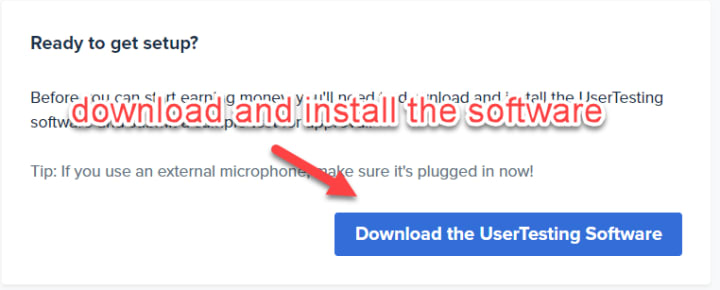 Then, you will be asked to download the usertesting software. Note that it is a screen recording software, that will be activated whenever you are giving a test. This software helps them to seamlessly record and upload your tests, even if their are interruptions in one form or the other (such as a flaky internet connection).