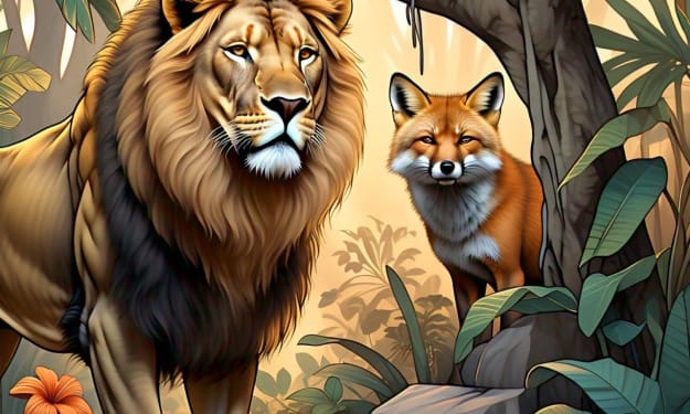A sly fox named Kallu, known for his silver tongue and clever mind, hatched a plan. “If I can’t fight the lion with claws, I’ll trick him with words.”