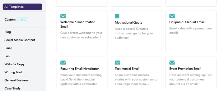 This is great, because this means you can make sure that your content is relevant to your audience in every stage of their buying cycle. It also means that you don’t need to learn about a new topic or industry before you start writing copy—you just have to know how each template works and what it’s good at doing with text.