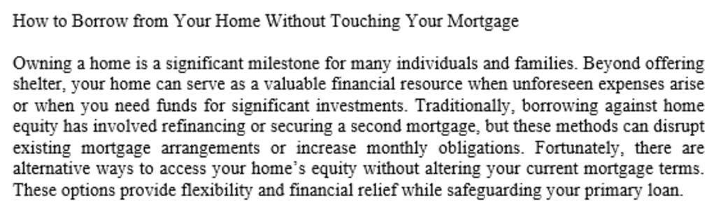 Owning a home is a significant milestone for many individuals and families. Beyond offering shelter, your home can serve as a valuable financial resource when unforeseen expenses arise or when you need funds for significant investments. Traditionally, borrowing against home equity has involved refinancing or securing a second mortgage, but these methods can disrupt existing mortgage arrangements or increase monthly obligations. Fortunately, there are alternative ways to access your home’s equity without altering your current mortgage terms. These options provide flexibility and financial relief while safeguarding your primary loan.