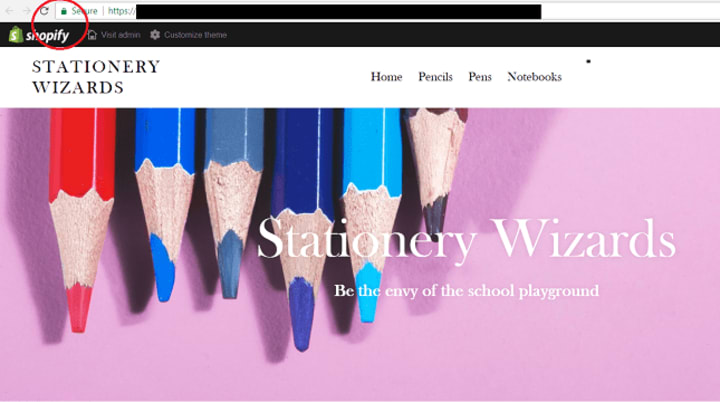 So, what does this look like? Have a look at the homepage for this store we made using Shopify. You can see the green padlock circled in the top left corner: