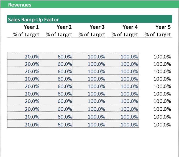 It is a vital mechanism to capture the year-on-year sales increase per product until it reaches 100%. Sales ramp-up is lesser in the first year and will increase in the succeeding years as you already establish your brand.