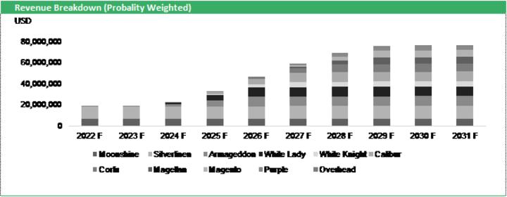 j. Revenue Breakdown is Probability Weighted per product to capture risk