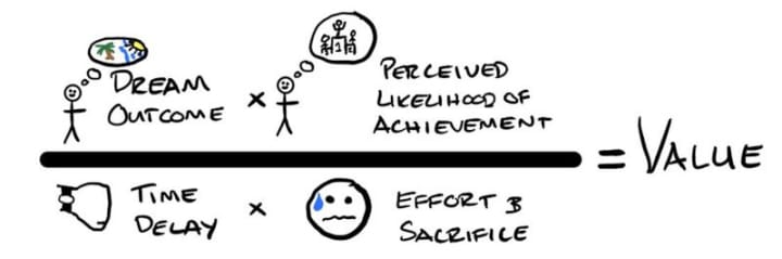 Alex Hormozi draws out the "value equation":