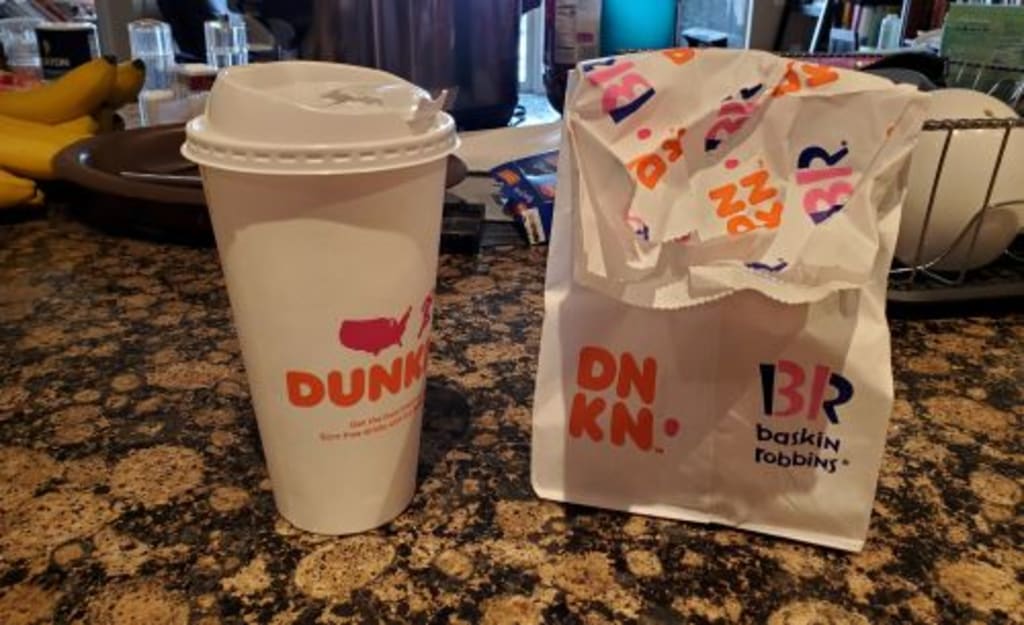 The one thing I am clinging to each morning to start my day is my trip across the street to Dunkin’ Donuts. Every day, I break up my commute from my bed to the living room by taking a detour across the street. I order the same thing: a large hot latte with extra sugar for me and a French cruller for my husband.