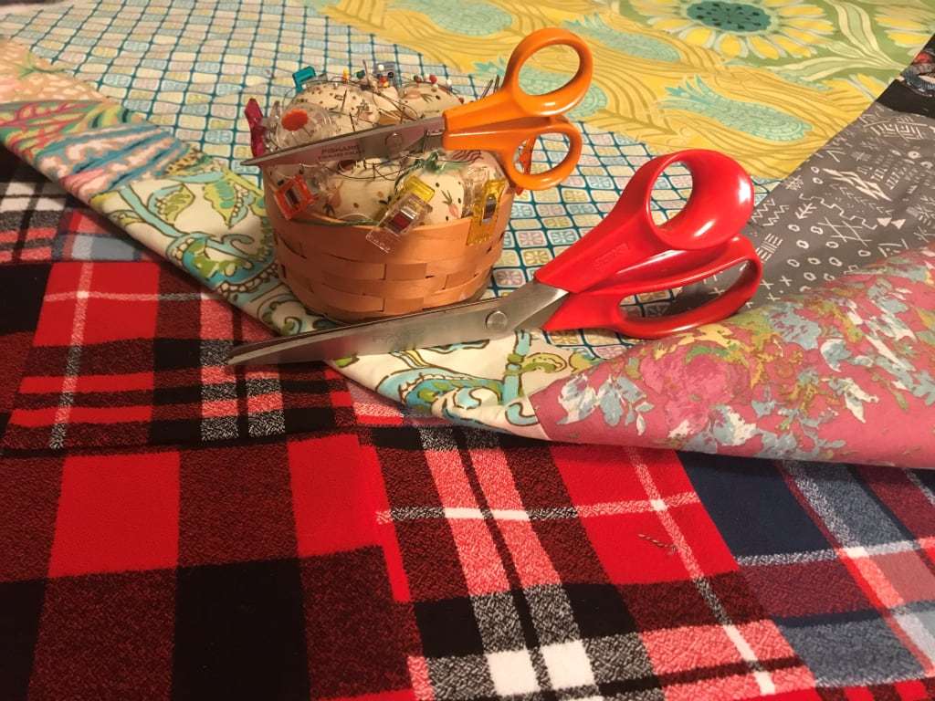 I recently began making quilts. It's a craft I have thought often about trying. I have been collecting quilting books and magazines for years with the intention of learning to quilt one day. I have a stash of colorful fabric washed, ironed, and ready to go. I have one "quilt sandwich" assembled and have made one stitching pass on the sewing machine to begin the actual quilting. I also have a flannel quilt top completed that will be a Christmas present for my Dad once the quilting is done.
