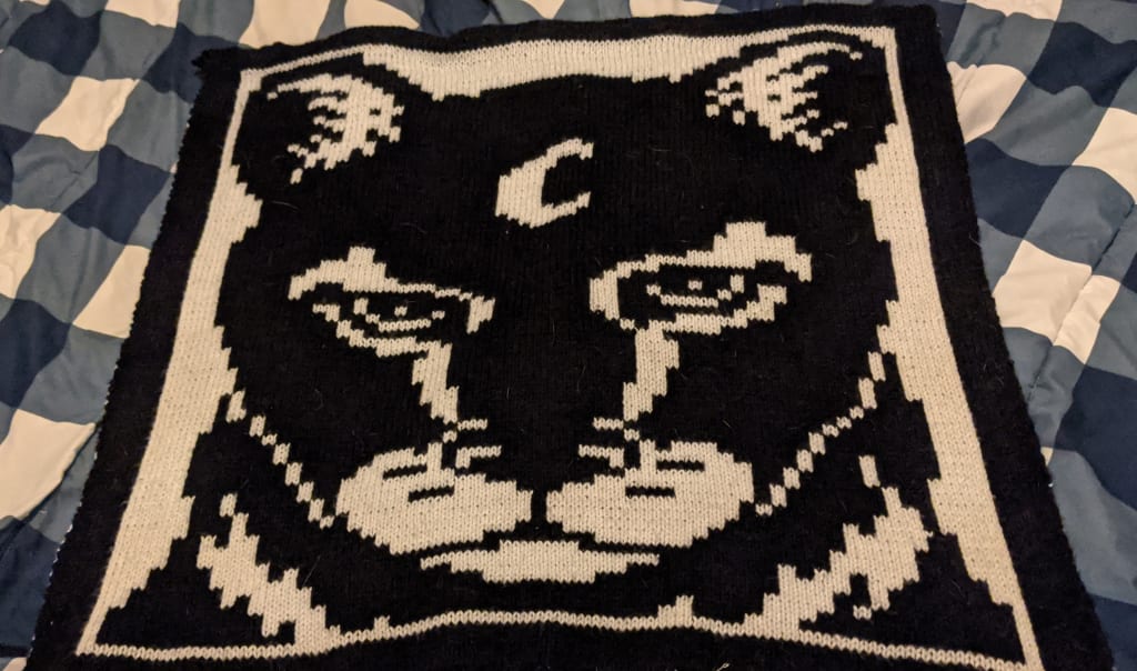 A few years ago I was in a car accident and then my daughter got sick. Once again I found myself at a loss, so I pulled out my old knitting bag. When I taught myself how to create reversible images I really began to enjoy the process more. Not only did it occupy my time, my hands, and my imagination (of which I had an abundance) But it also gave me something complex to do to help while away the hours I spent in doctor's appointments waiting for specialists.