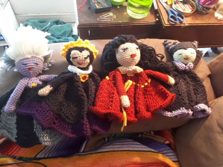 In 2010 I quit drinking and I began trying to get better at my hobby. I needed something I could do that I could pick up and set down again at will. Once I realized I was terrible at gauge - that is making things a specific size according to a pattern- things became much easier for me. I made all kinds of things, but I really enjoyed making toys. Since they didn't have to be a certain size, and I could make them however I wanted. And I started getting really creative.