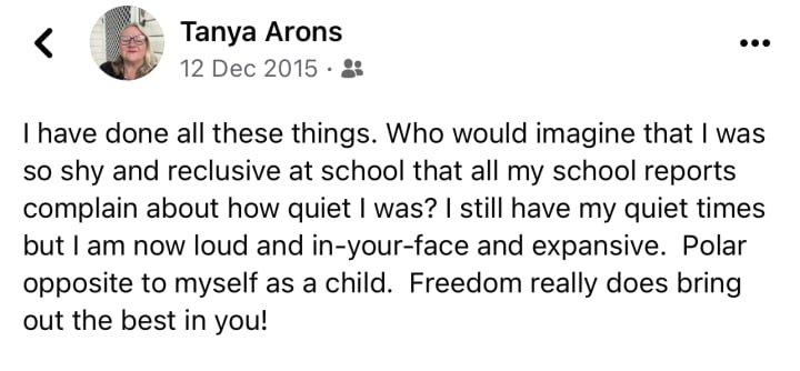 I write about my life experiences. I write about complex ptsd, the agonies, the angst and my post traumatic growth. About Beauty, Truth and Honour and little vignettes of comfort from the spirits that love me: living and dead. I also Dance!