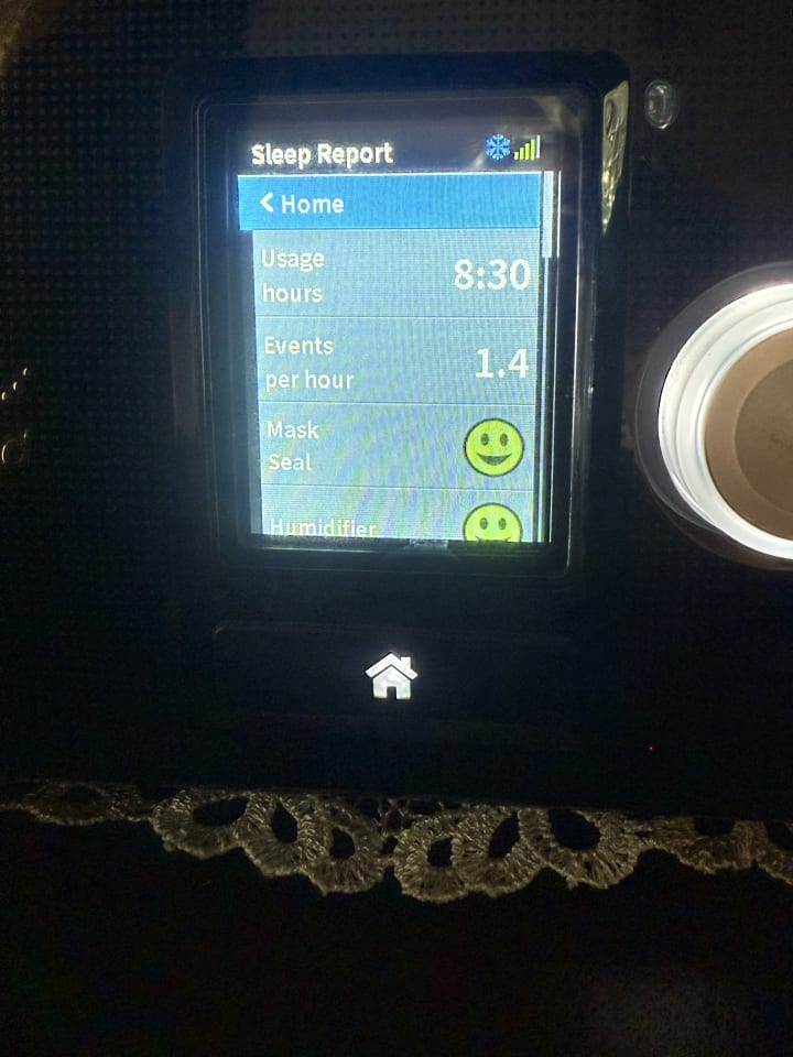 7:14 am good morning. It looks like I could have avoided spending money on a new cpap mask as my breathing is coming back to its reasonable disarray instead of 11 times per hour or 9 times per hour.