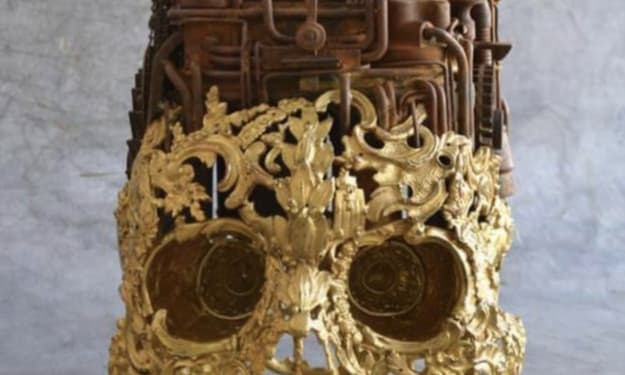 We walk into my spare bedroom. It’s light and airy and no longer cluttered with Mum’s old cabinet. “Bernie” is apparently staying with me. He shows me excitedly this really quirky clockwork box that does all sorts of amazing things Sorta like steampunk. He asked me where I got it. It’s worth a fortune.
