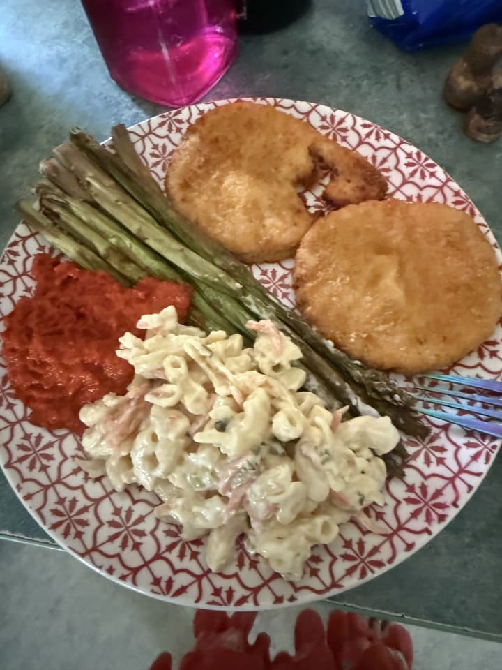 Lunch is served! I had the last of the chocolate mud cake for breakfast which is a whole level of gutbusting death defying insanity. So I felt inspired to make something healthy in my air fryer. Asparagus. A rare treat.