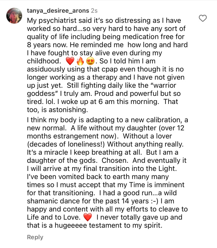 I am the happiest I have been in decades. I still struggle with a severe mood disorder from Complex PTSD but I have fully engaged with my life in recent months. Off my meds. Writing long love tomes to my beloved (like a sappy bitch) but even that has helped me heal from my loss.