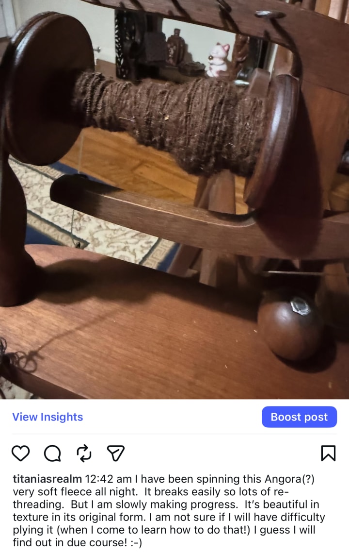 I wanted to go dancing last night but worried about money and then became overwhelmed with exhaustion, so I pushed through it by spinning fleece. I listened to a demonologist about aliens. He is convinced we are being manipulated by evil. Christian’s….ugh….but I listened to what he had to say. When he mentioned Incubi I sat up and paid extra attention as I had one here for several months after my friendship with Scott was slaughtered.