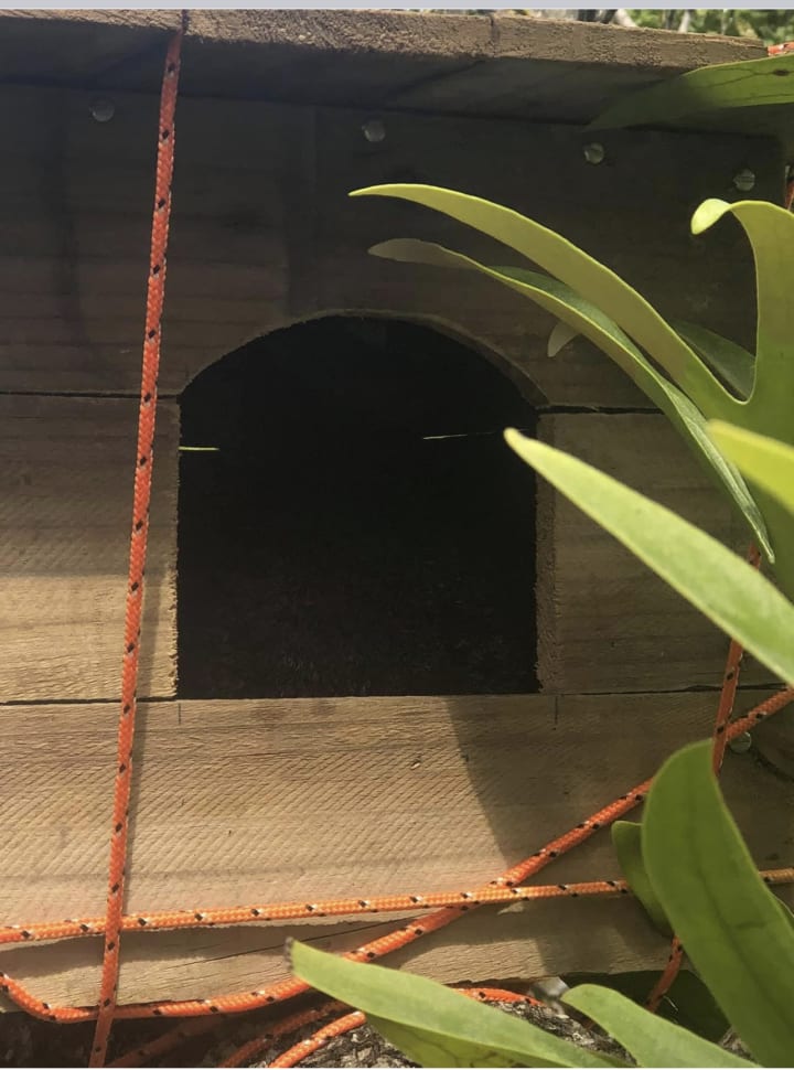 Peter’s possum box is a success. Brush tail possum is resting inside. I am soo happy she likes it!