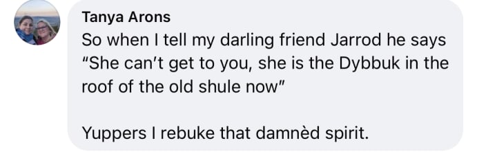 So I attended a shule that I had a lot of mixed feelings about (cptsd...zere is a history darlinks). But it gets better. I rise above the evil glare from one of the women in the sanctuary and sit and recite the prayers etc. We all take turns to read out a list of our dearly departed.