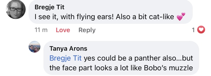 I was about to wash my mug from last night (kept beside my bed). I said to Beauregard’s spirit last night “I miss you sooo much Bobo!” Well, here he is. A “Hello” from the Ether. I guess I see what I want to see. But it does look a bit like him.