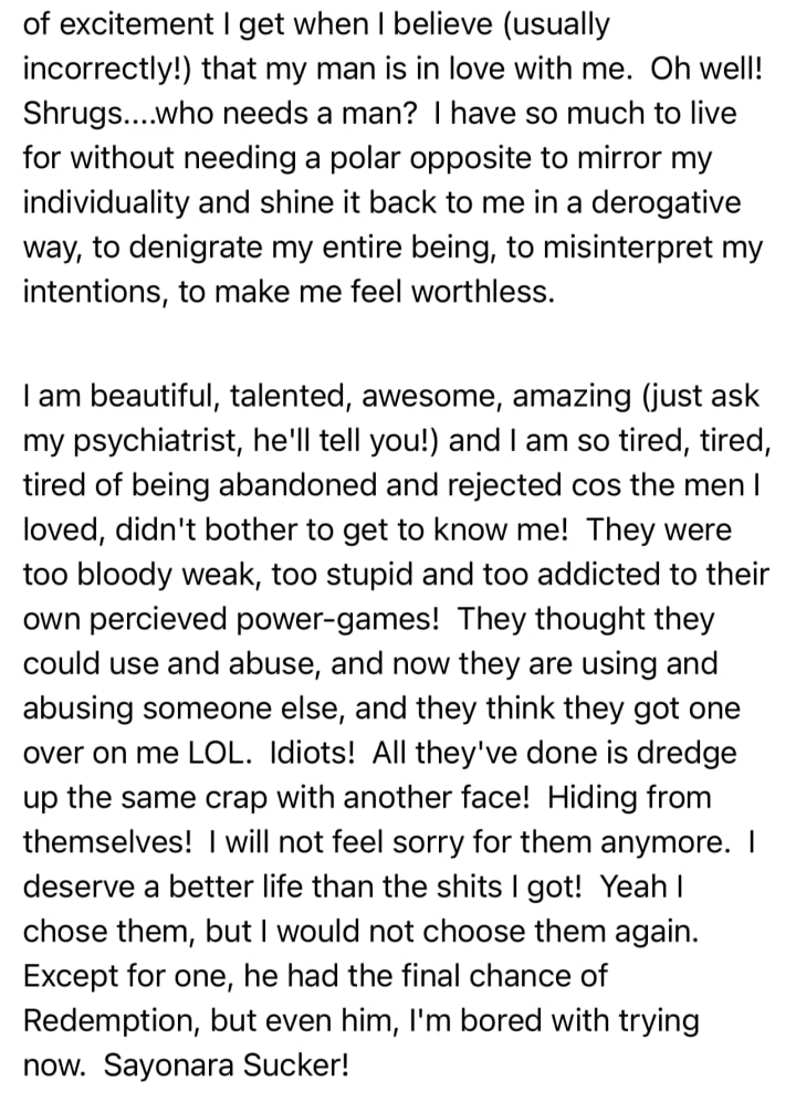 I don't want that filth in my energy. He can fuck off. But he did not leave so easily. His obsession following him to his grave. He hated my freedom. Was envious of it. Tried to kill me. Tried to rob me of my joy.