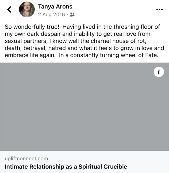 In Kabbalah classes his friend Emmanuel went out of his way to humiliate me also. Constantly made foul comments about my vagina, my womanliness. I ignored it. I am a warrior. I am more than a receptacle of men's lust and men's hate.