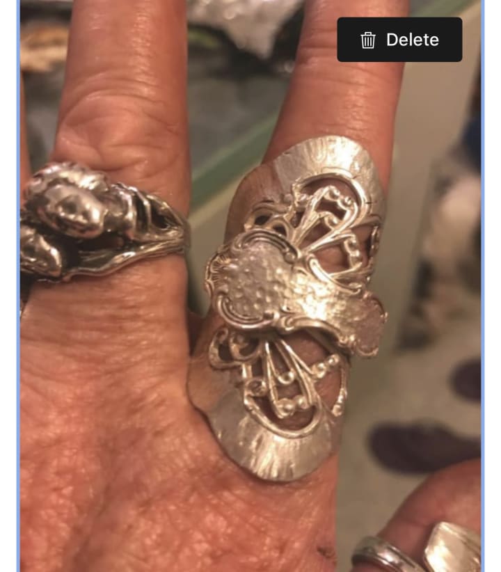Busy morning. My silver spoons arrived so I am tumbling them to clean them. Then to decide if I am making earrings or rings out of them. I pulled down some silver necklaces from around my four poster bed as they are badly tarnished also.