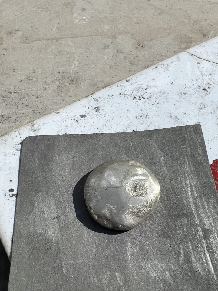 Today, deep in grief and still furious about the awful way my dog and I were maltreated…I am sanding down the silver to make a flat top to solder a bezel with. I melted down the other ring I made (the top and bezel!).