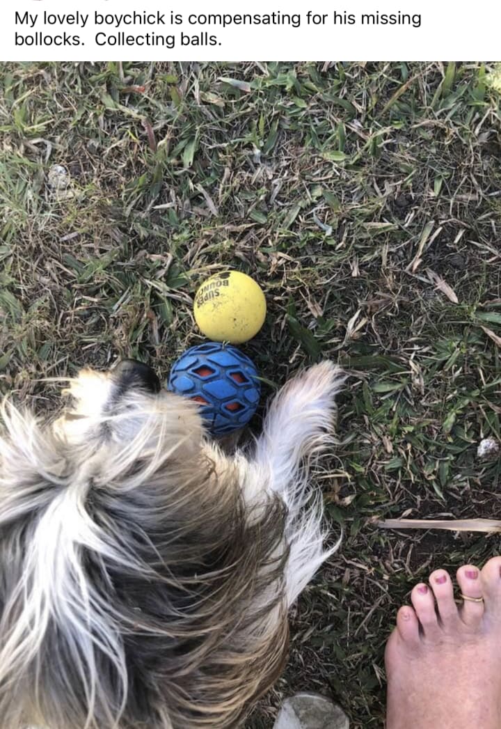 We are at the dog park so Beauregard can chase his ball. I have a squeezing wheezing chest from the lovely scented mimosa (wattle flowers?) I regret not taking my Ventolin before leaving the house. All good. Used to breathing shallow and it’s such a gorgeous day.