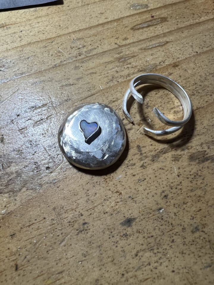 I rescued the broken Opal which I might carve into a heart shape so this will be a memento of the love I poured into my dog, all my other pets and into friends and family. Some falling like mercury into the dust: unwanted, dishonoured. So the love I have left inside me is being channeled into my jewellery.