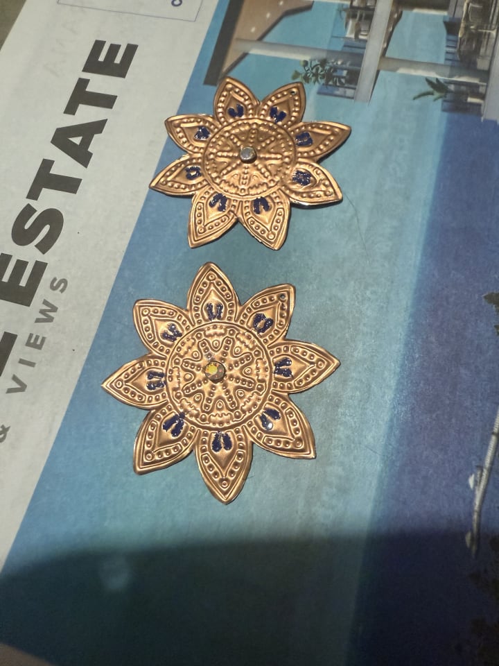 It’s been a lot of work (I also cut out heart shapes from the tin). But I added crystal rivets and now I don’t like them much. Instead of earrings they might work as Xmas tree ornaments. I am exhausted. #titaniasrealm #whereIwastemytimemakingcrazystuff lol .