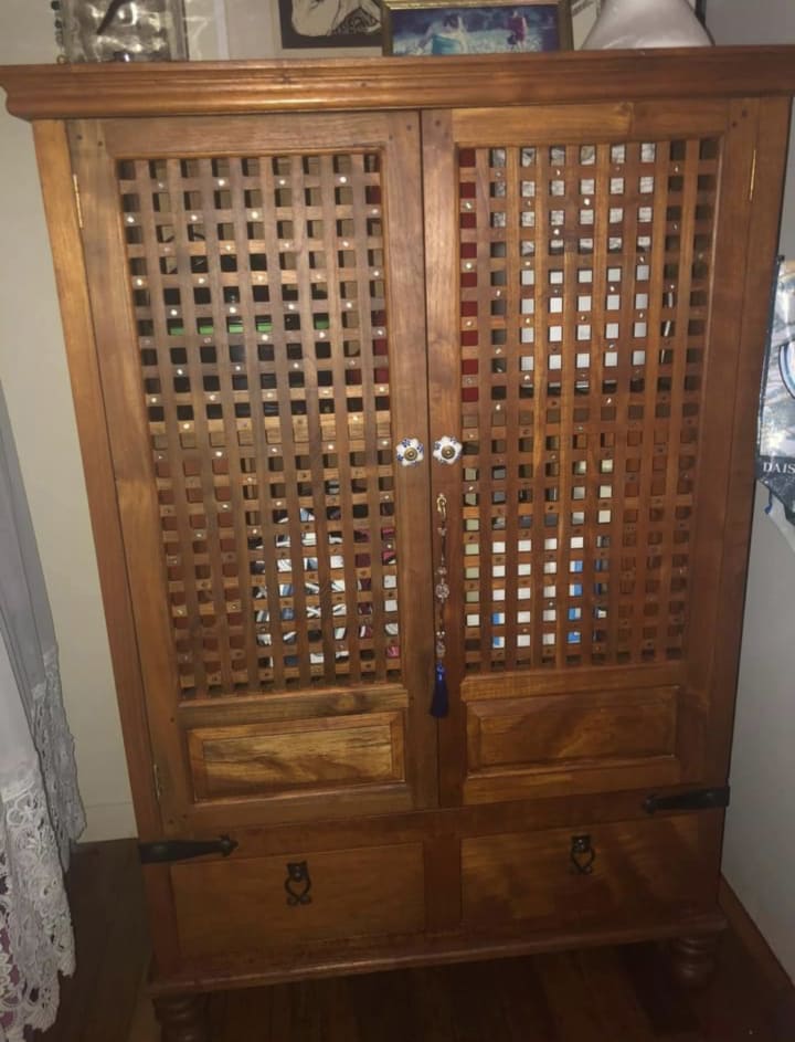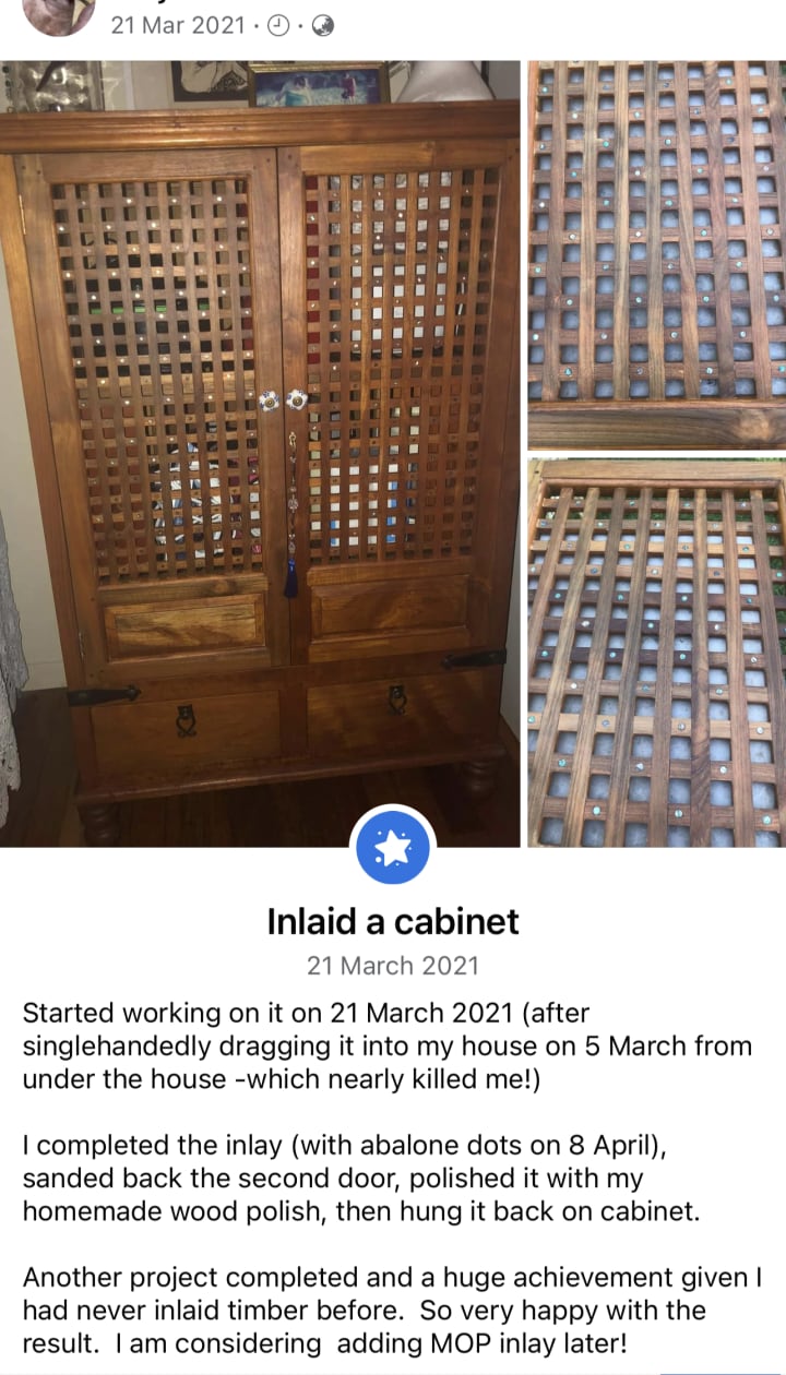 My first inlay project on a beautiful free cabinet I acquired.