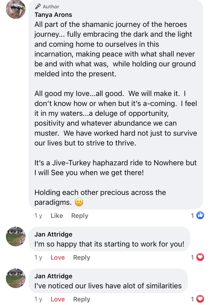Like …whoa Man! The Tanya is reborn and holding her own and shining through. I am grateful for the deep love and support of my true beloved ones: human and non-human. It’s been amazing. To see what I can achieve in one of my spiritual enervated, almost fugue states.