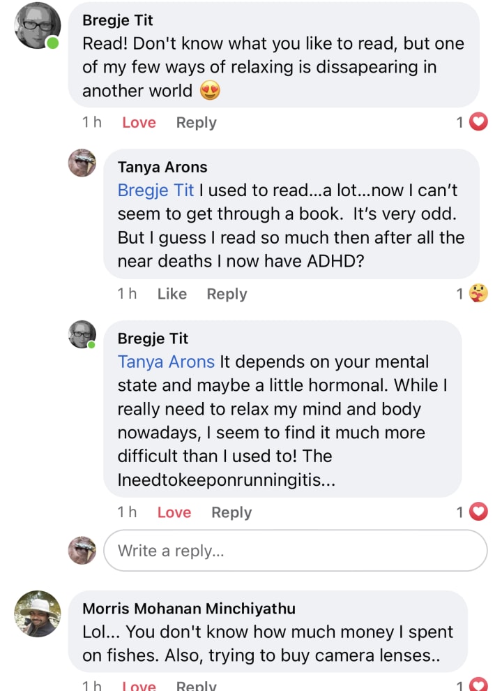 I told her I often do that…make life hard or impossible for myself because my brain just goes off in tangents and it makes no sense, not even to me. We both laughed. Our shared laughter was also soothing and healing.
