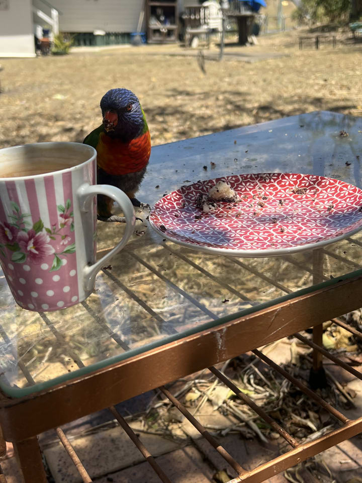 My chooks are talking to me and fussing around my hammock. I also had a visit from my "pet" crow who was inspecting the dead toad which I suspect he had a hand in terminating. Icky!