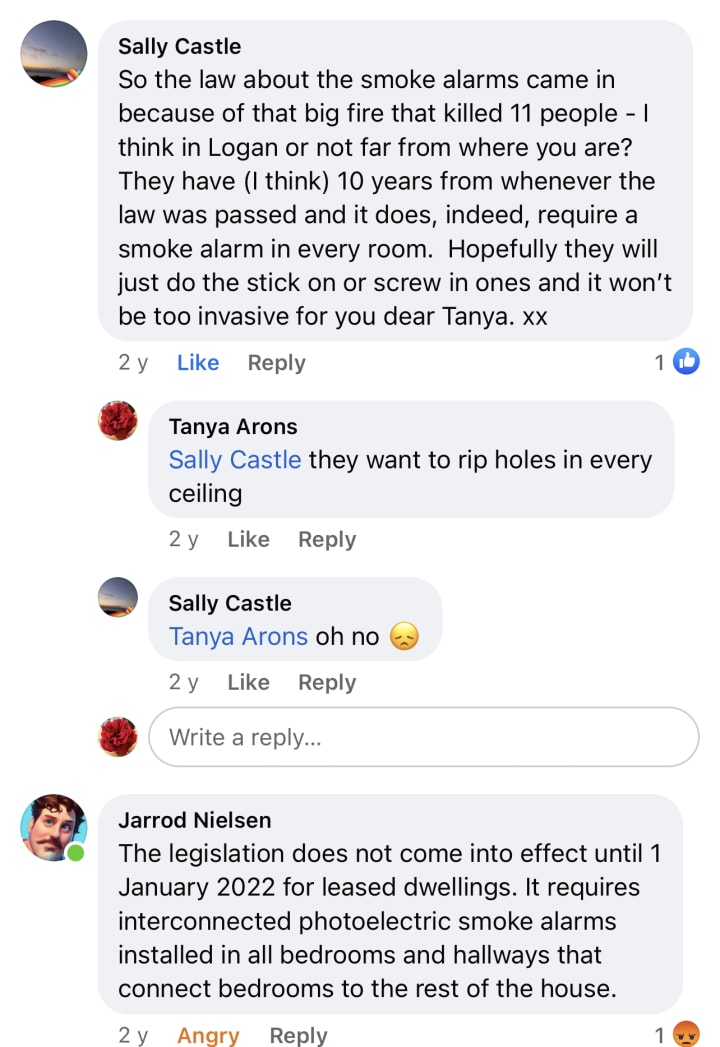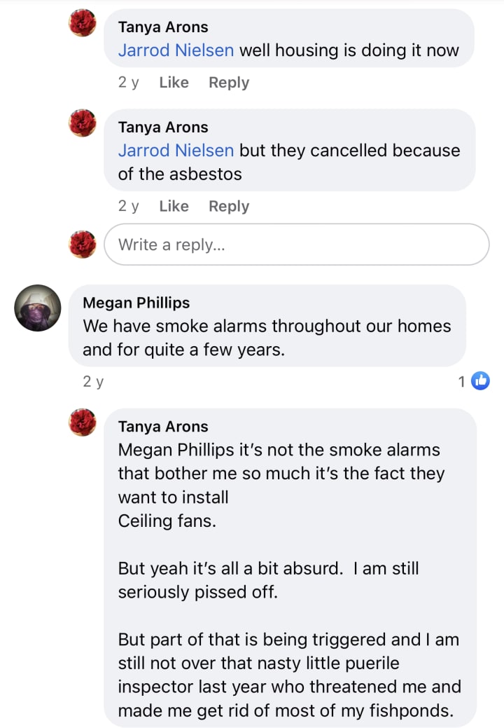 Smoke alarms in every ceiling in an asbestos house are redundant anyway. It won’t burn that easily.