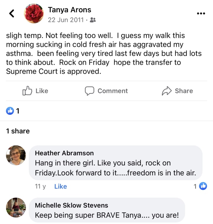 For that I have no regrets. I got Me back. I found out who the hell I am, and what kind of woman I am and I got to be proud of myself. I got to stand up and fight during the Will Dispute, for myself, for my dignity amidst the heinous lies they had written into the will about me. A woman the Scherer women had never even met until the Guardianship Tribunal where I was once again, sold down the river.