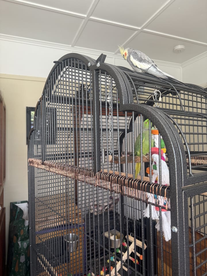 Beau is free today. But he is sitting on top of Kermie’s cage and Kermie keeps trying to kill him through the bars. Lucky I did not free range them at the same time!